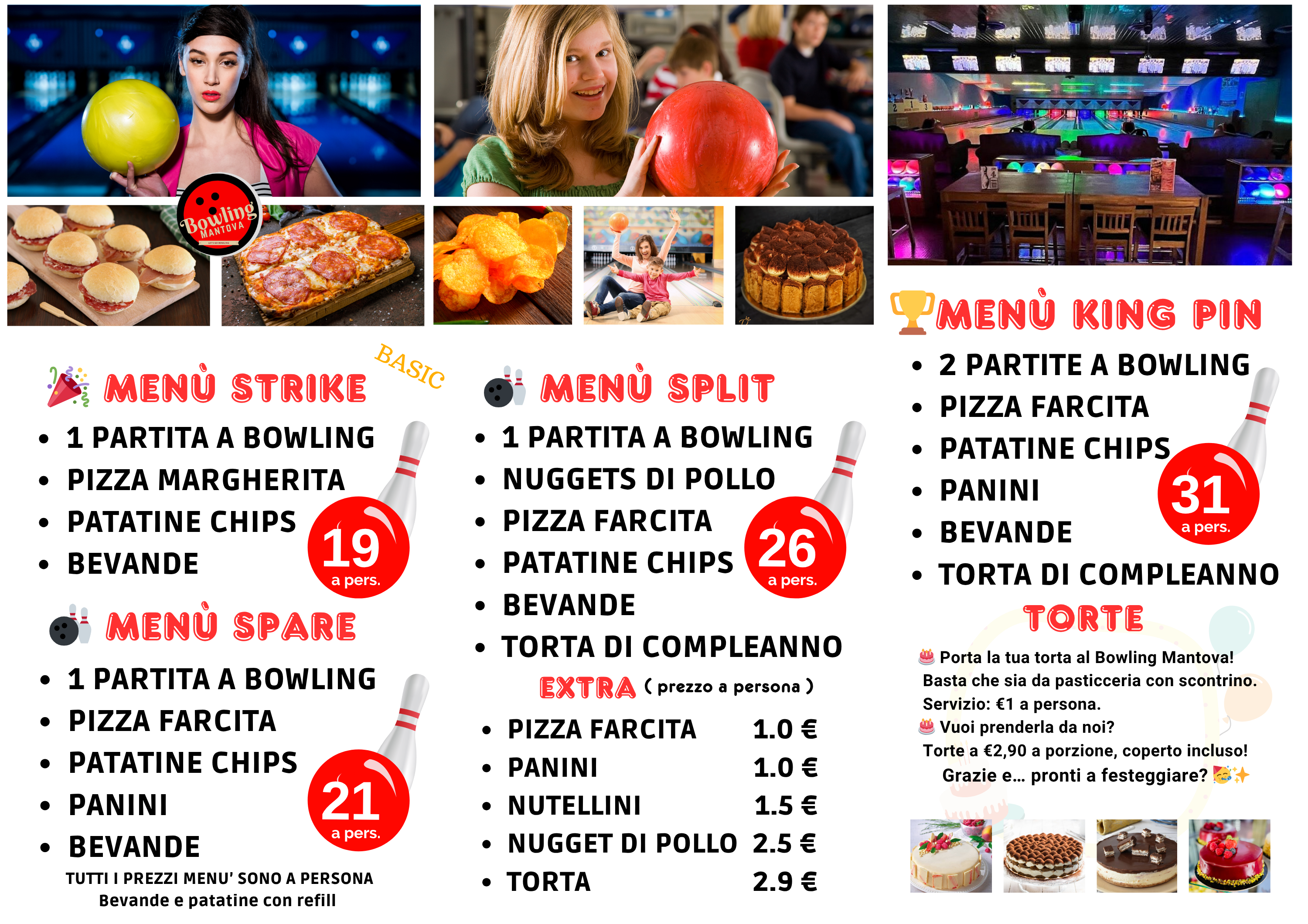 Per la tua organizzazione festa di compleanno, festa di laurea, cena di classe, o qualsiasi cosa tu voglia festeggiare vieni da noi al centro bowling a Mantova!